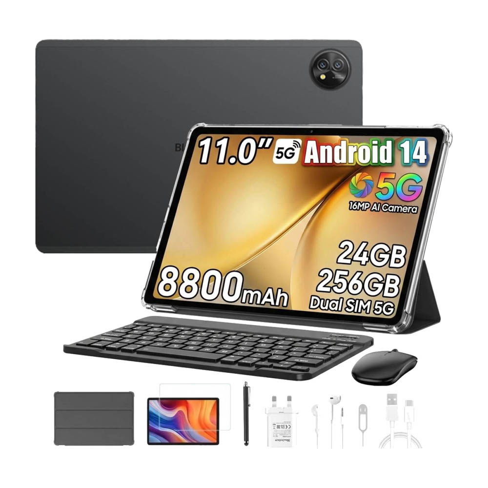 Blackview Zeno 10 5G AI Tablet, 11″ FHD+ 90Hz Display, Unisoc T820 Octa-Core, 8+16 RAM 256GB Storage, 16MP AI Camera, 8800mAh Battery, Dual SIM 5G, Android 14, w/ Keyboard, Mouse, Stylus Pen, Headphones, Screen Protector
