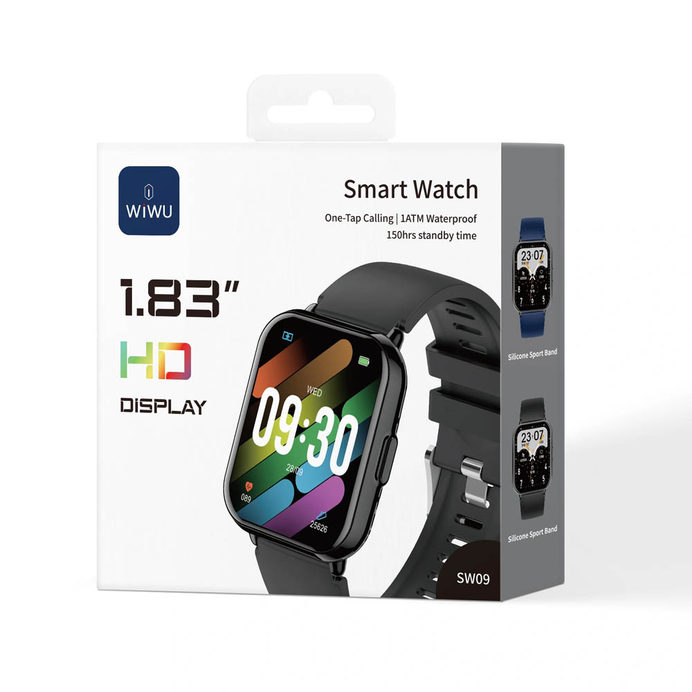 Elevate your daily routine with the WiWU SW09, the smartwatch that does it all. A stunning 1.83″HD display with 700 nits peak brightness brings your notifications, stats, and over 100 customizable watch faces to life with vibrant clarity. Stay connected effortlessly with high-quality Bluetooth calling and music control directly from your wrist. Dive into your fitness journey with over 100 sports modes, tracking everything from your daily run to your weekend hike. The SW09 is also your personal health guardian, with 24/7 monitoring of your heart rate, blood oxygen (SpO2), and blood pressure. But it doesn’t stop there—unlock smart doors with NFC, get instant answers from the AI voice assistant, and manage your day with a suite of convenient tools like real-time weather, a calculator, and split-screen widgets. With a long-lasting battery and 1ATM water resistance, it’s built to keep up with your life.
