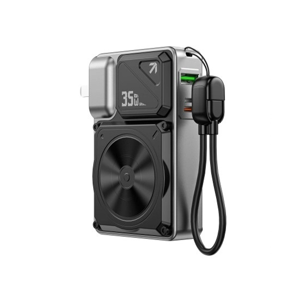 Function: It is a charging head, a mobile power source, and a folding stand.